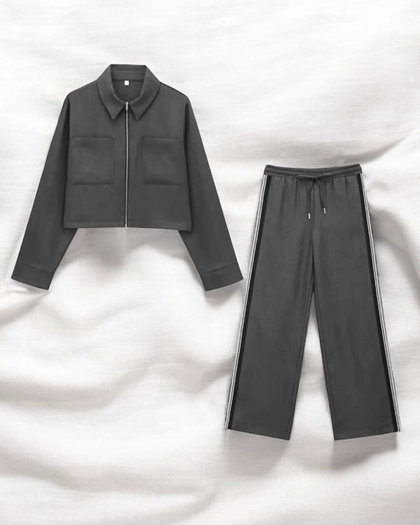 サイドストライプセットアップは、スタイリッシュな襟ジャケットとリラックスしたパンツが組み合わさったアイテムです。カジュアルながらエレガントな印象を与えてくれるデザインは、ビジネスシーンからカジュアルなお出かけまで幅広く活躍します。異なるシーンで自信を持てるスタイルが楽しめます。