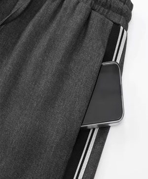 サイドストライプセットアップで、一瞬で洗練された印象を与え、様々なシーンで自信を持ってご着用いただけるアイテムとしてお勧めです!どんなスタイルにもフィットし、あなたの魅力を一層引き立ててくれます。