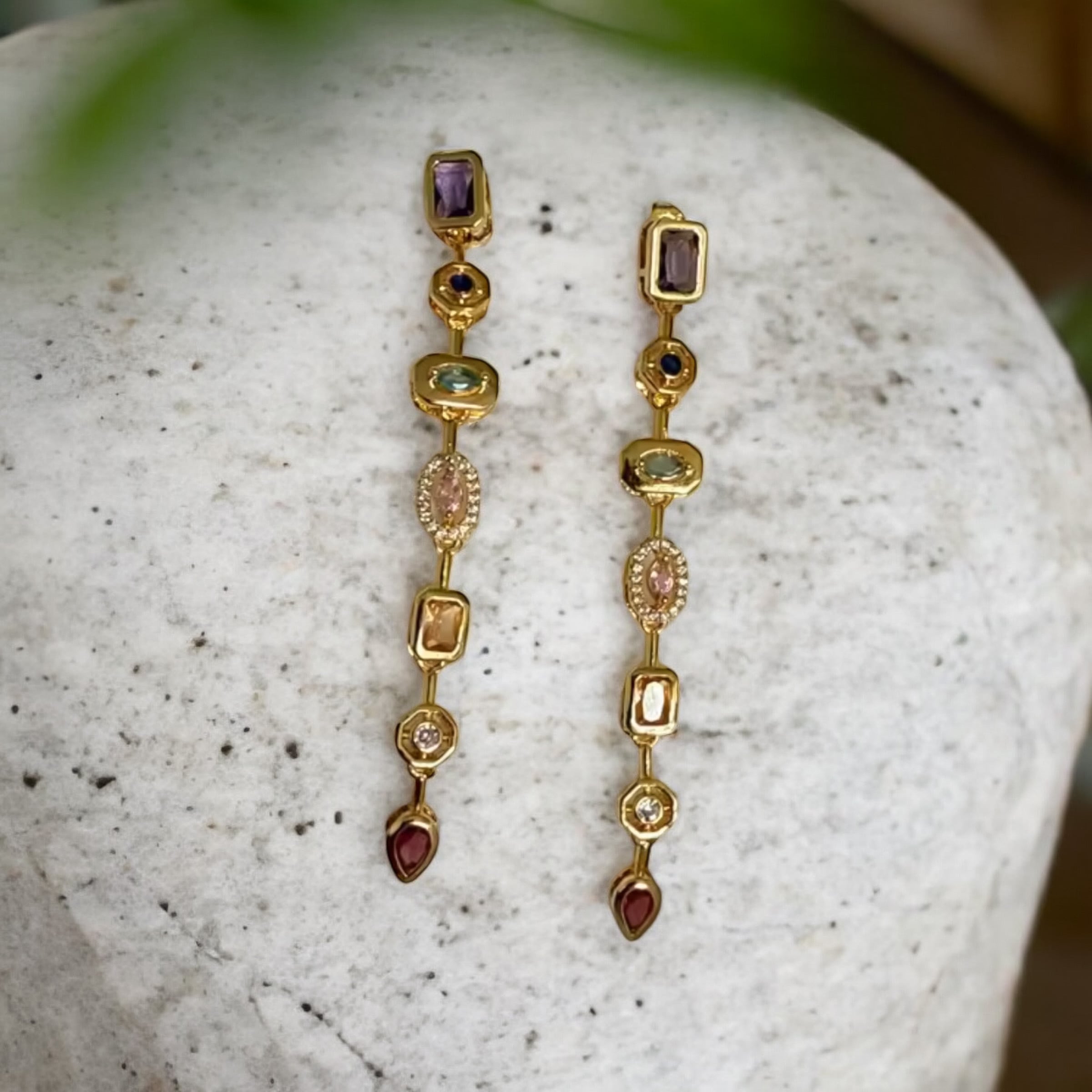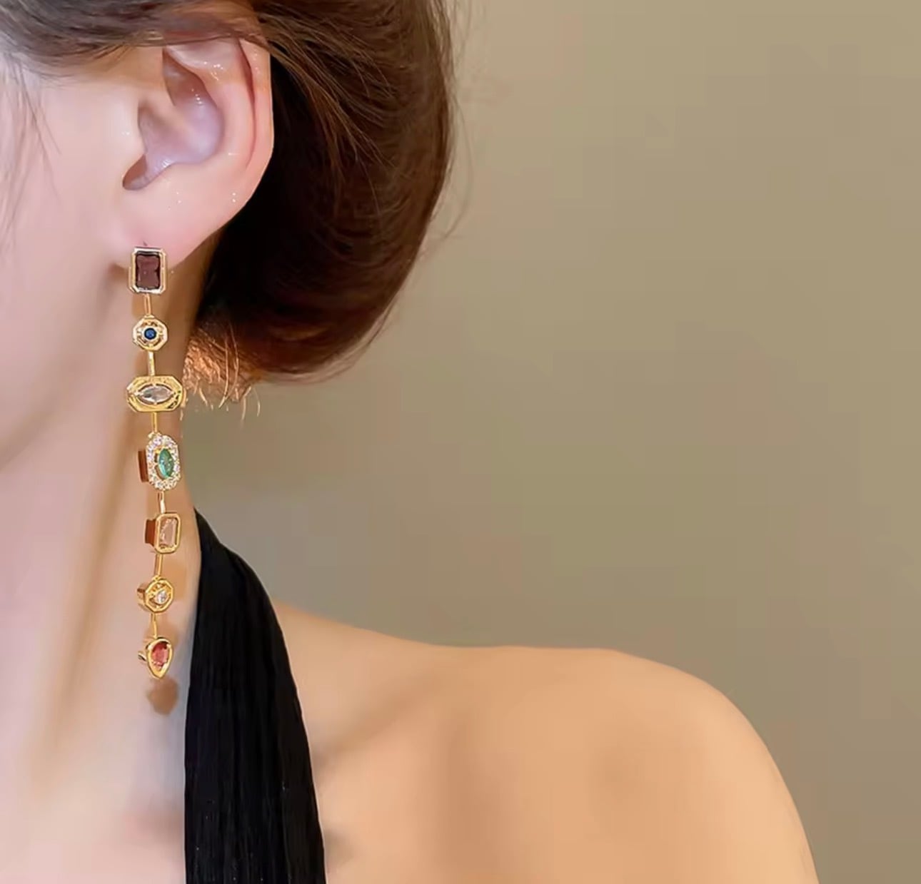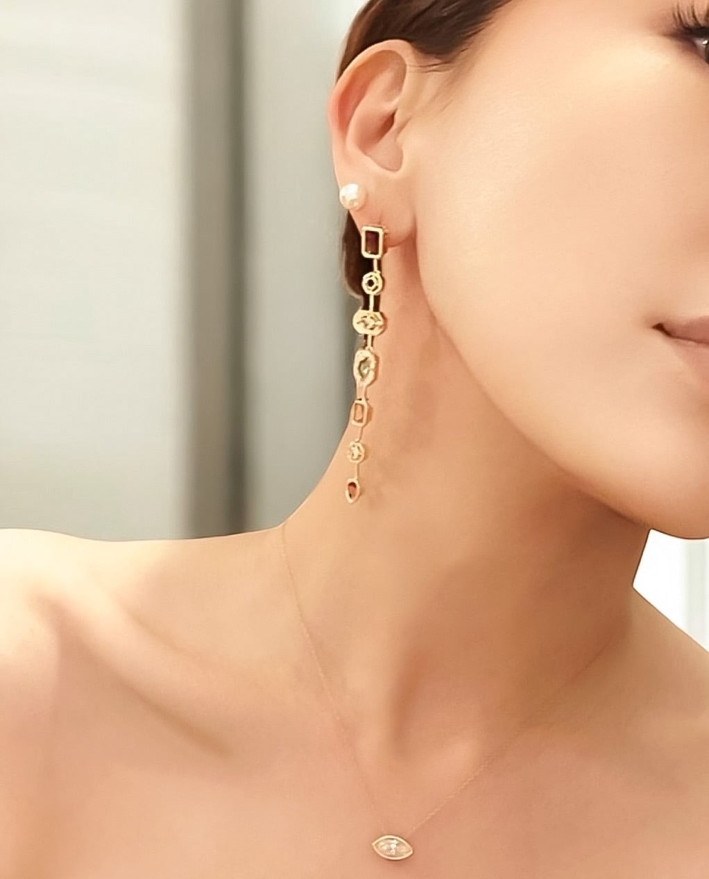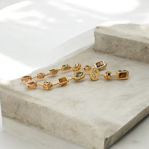 デザイン:スタイリッシュなロングピアスで、ゴールドラインの煌めきが魅力を引き立てます。