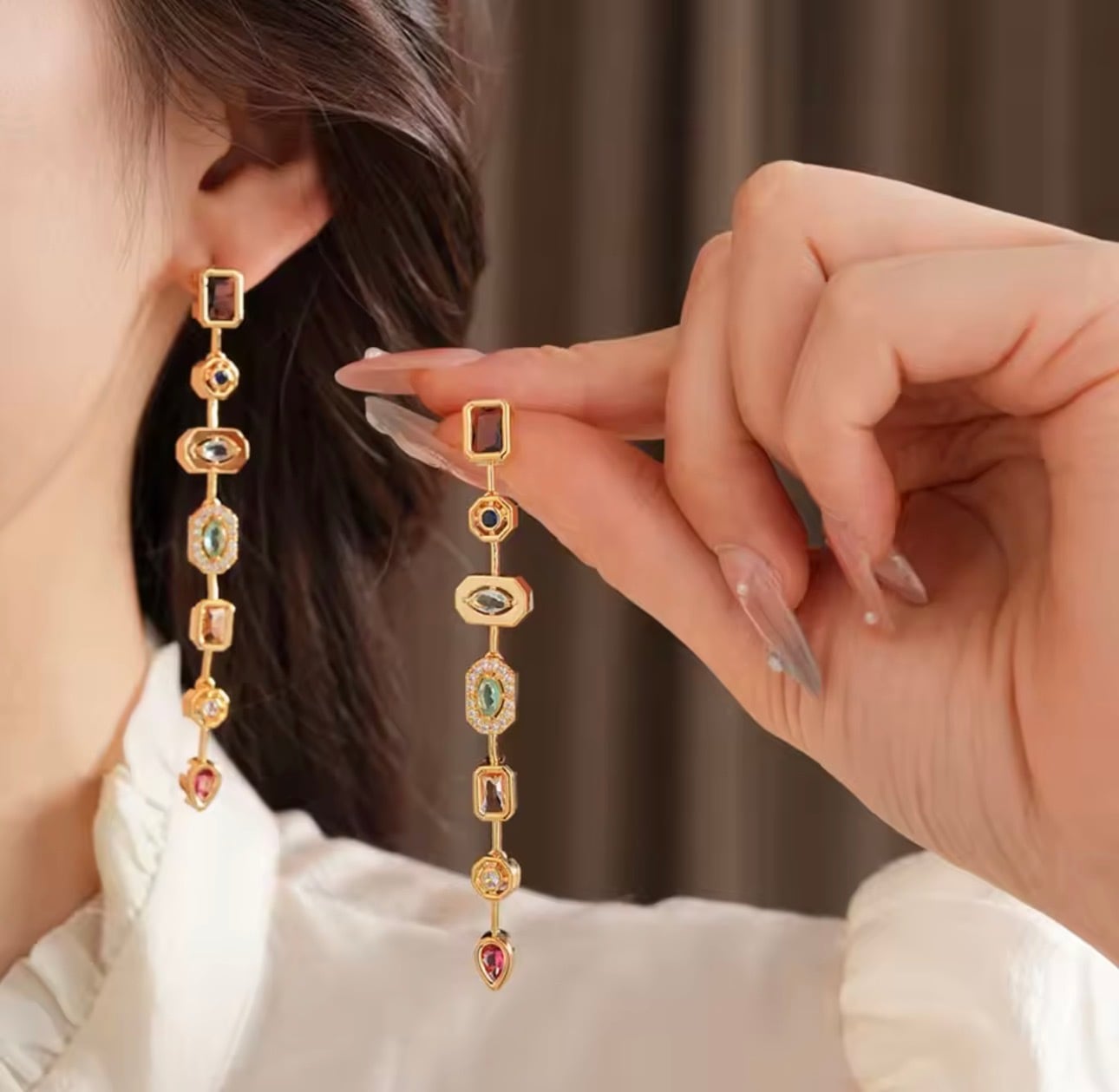 クリスタルジルコニアロングピアスで、あなたのスタイルに華やかさとエレガンスをプラスし、様々なシーンでの装いを楽しんでください!美しい瞬間を彩る一品として、ぜひお試しください。