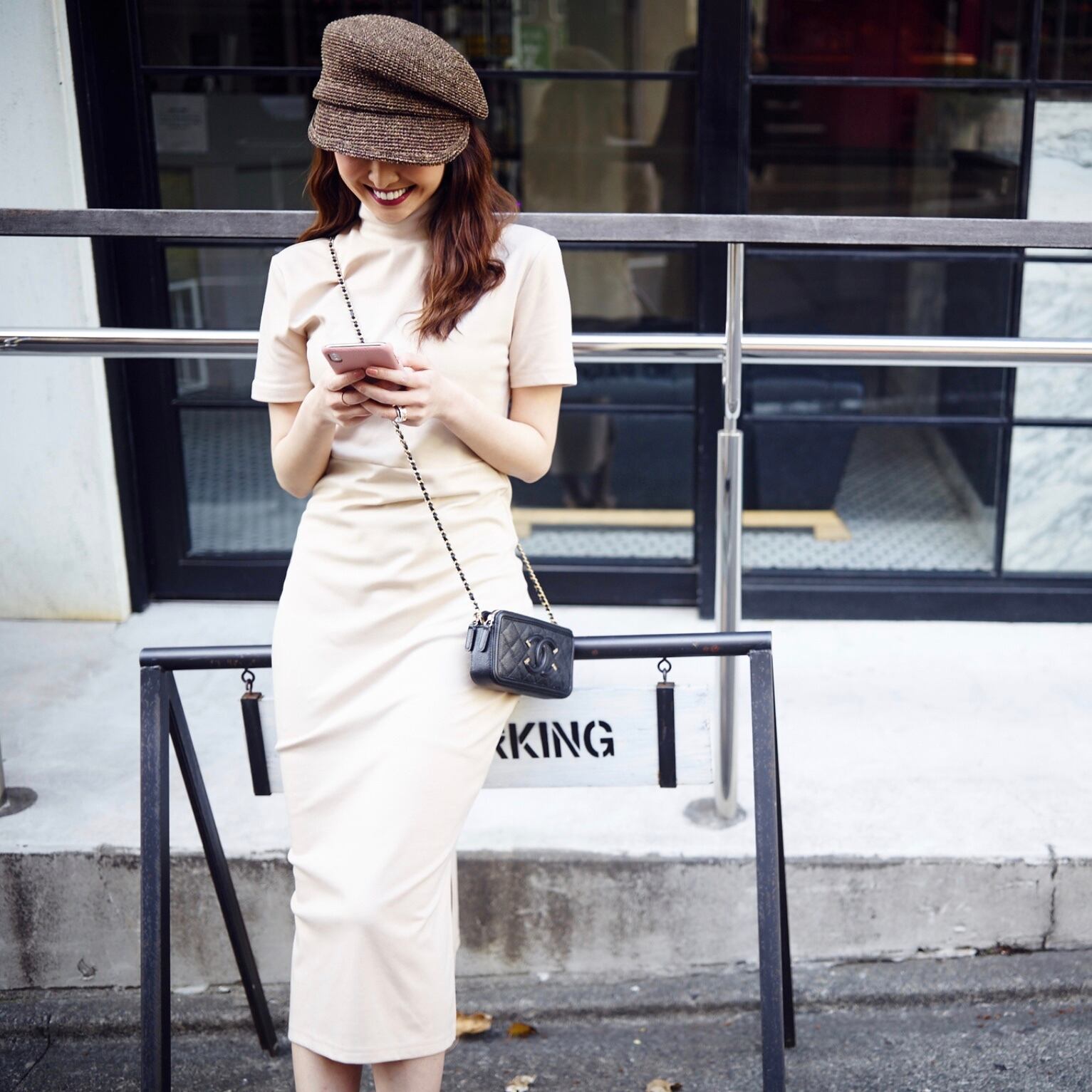 すっきりとしたタイトラインとハイウエストの切替でスタイルアップ効果のあるワンピース。