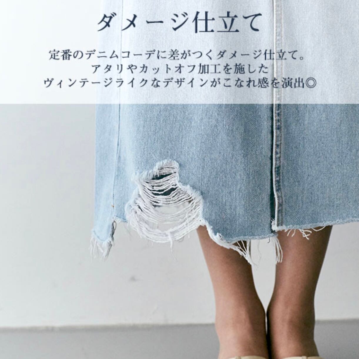 すっきりめのAラインシルエットで女性らしく着こなせるデニムスカート。トレンドに左右されないデニムアイテムは、着回し力抜群です。