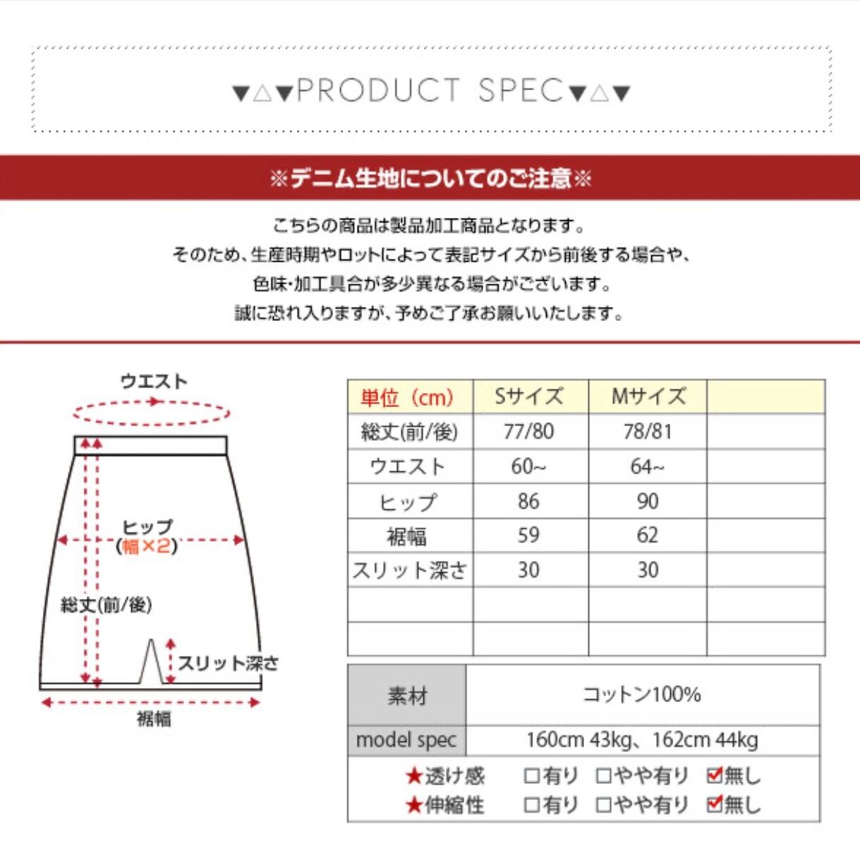 抜け感を与えるフロントスリット。ざっくりと深めに入ったスリットで、カジュアルなデニムもぐっと女性らしい印象に。