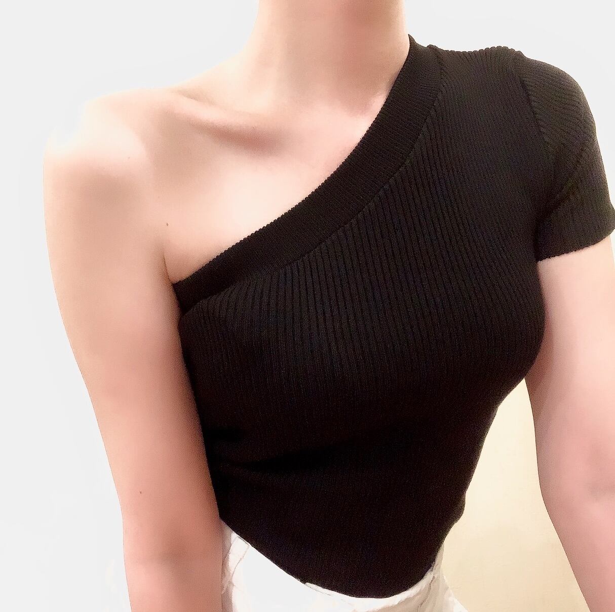 夏から秋にかけてご着用いただけるシンプルなブラックトップスです。