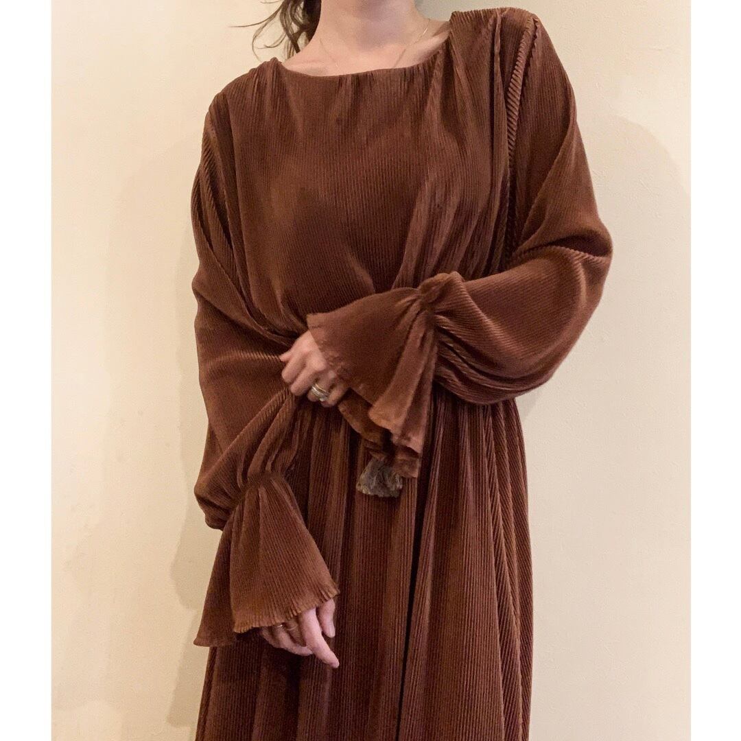 コットンプリーツロングワンピース