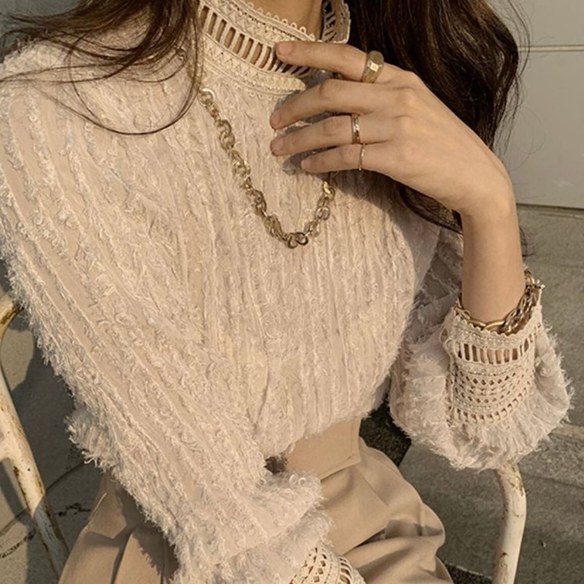 エレガントレースブラウス/Black/White