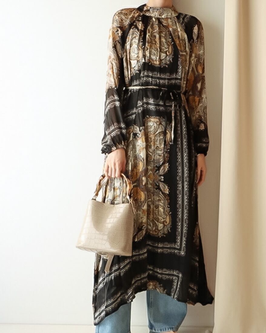 【国内発送】パネルデザインロングシフォンワンピース/ペイズリーデザイン/パイソンデザイン
