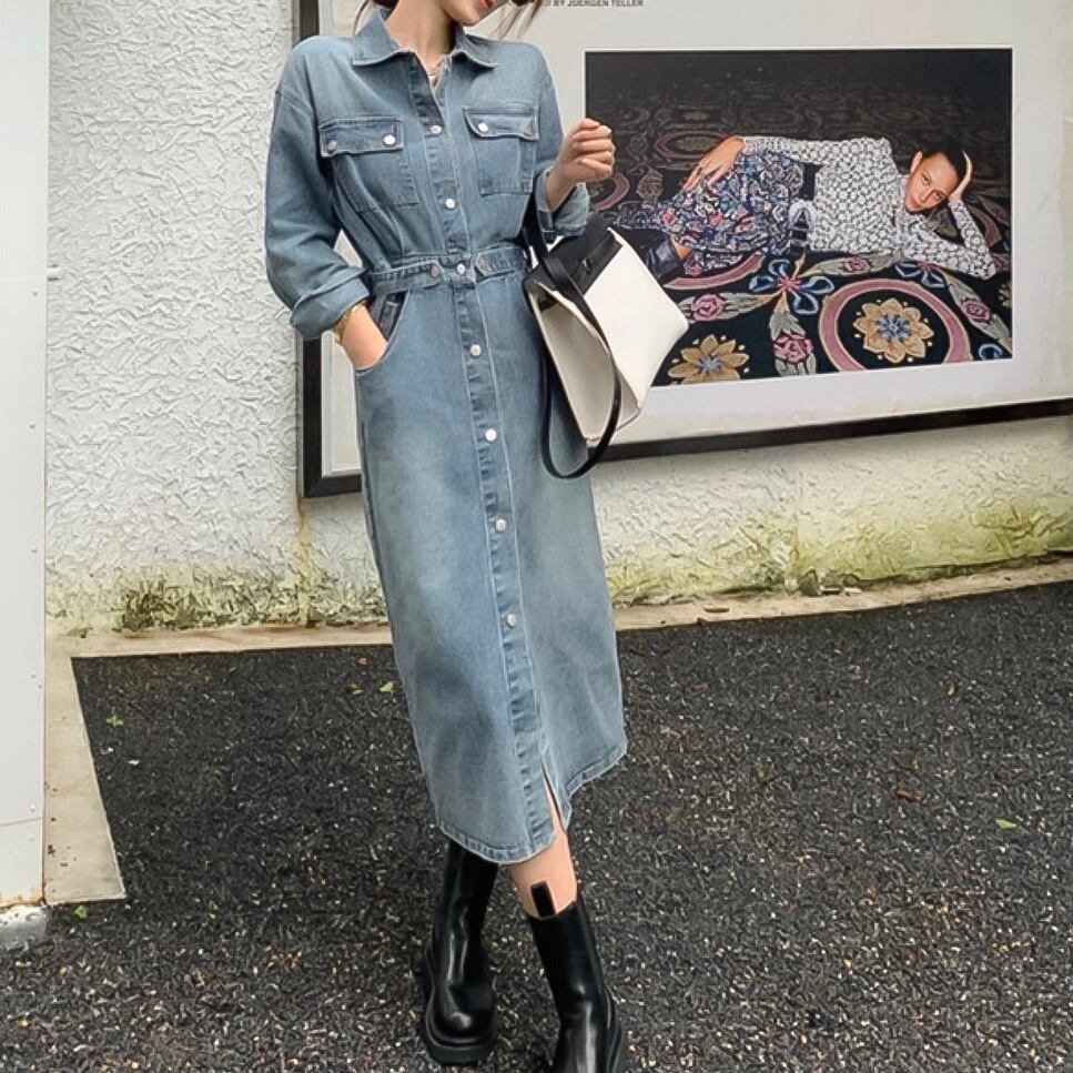 一枚でお洒落にかっこよくキマるデニムワンピース。こちらは羽織りとしてもご着用頂けます。
