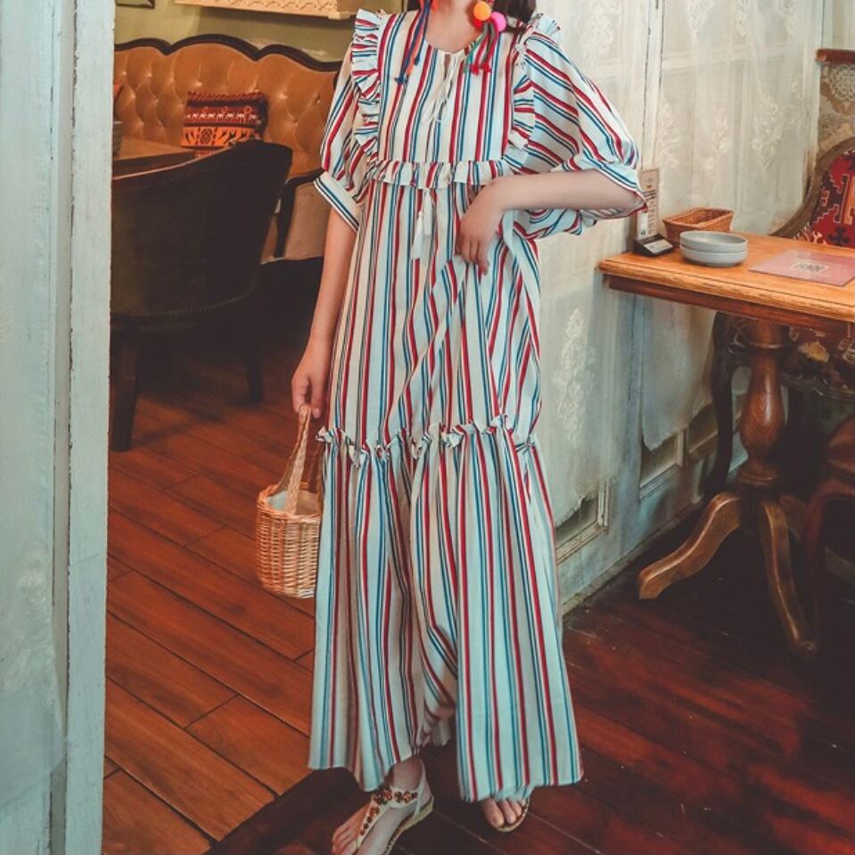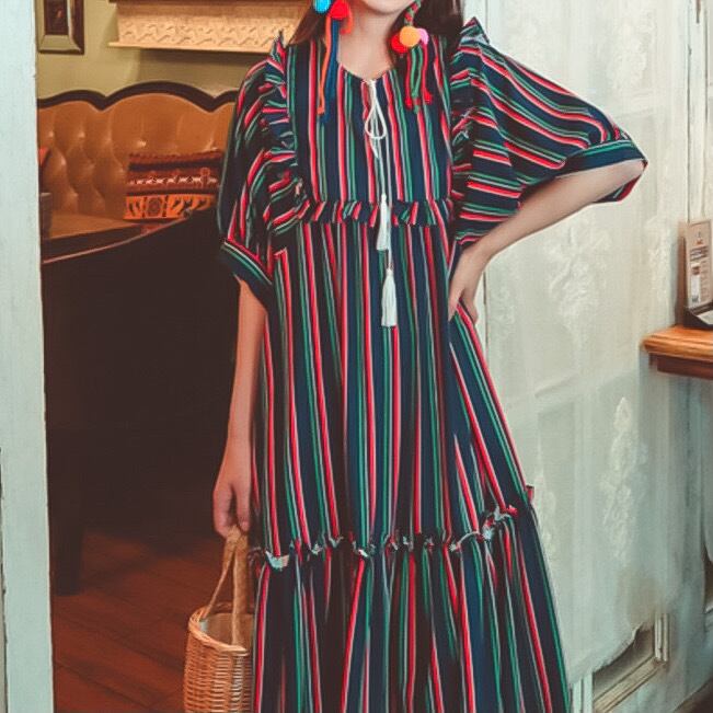 【2color】レトロフリルドルマンスリーブロングワンピース