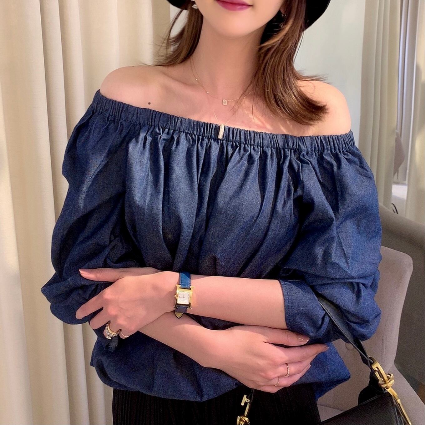 オフショルダー2wayデニムブラウス