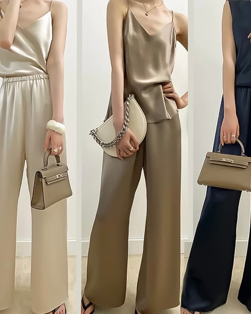 国産トリアセテートエレガンスロングパンツドレス【セットアップ】