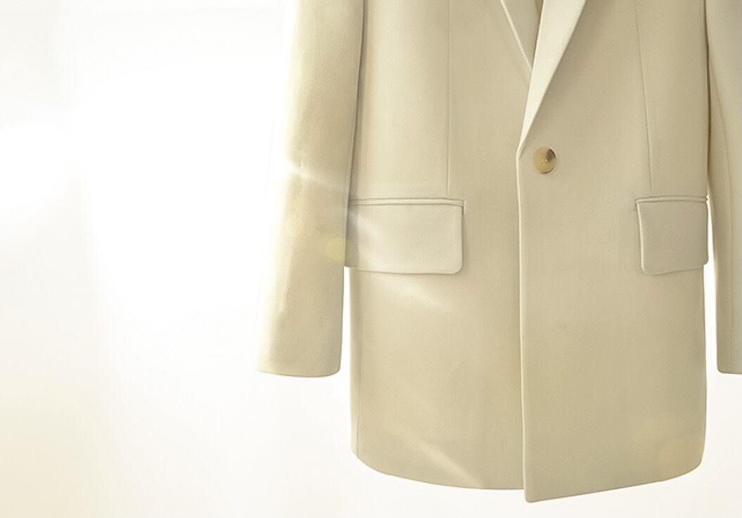 シンプルなホワイトジャケットにバックデザインをプラス。流行のオーバーサイズ感をナチュラルに演出してくれるブレザージャケットです。