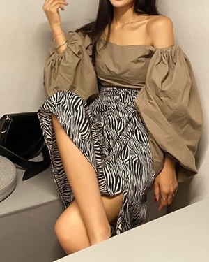 お袖のボリュームたっぷりなオフショルダーブラウス。