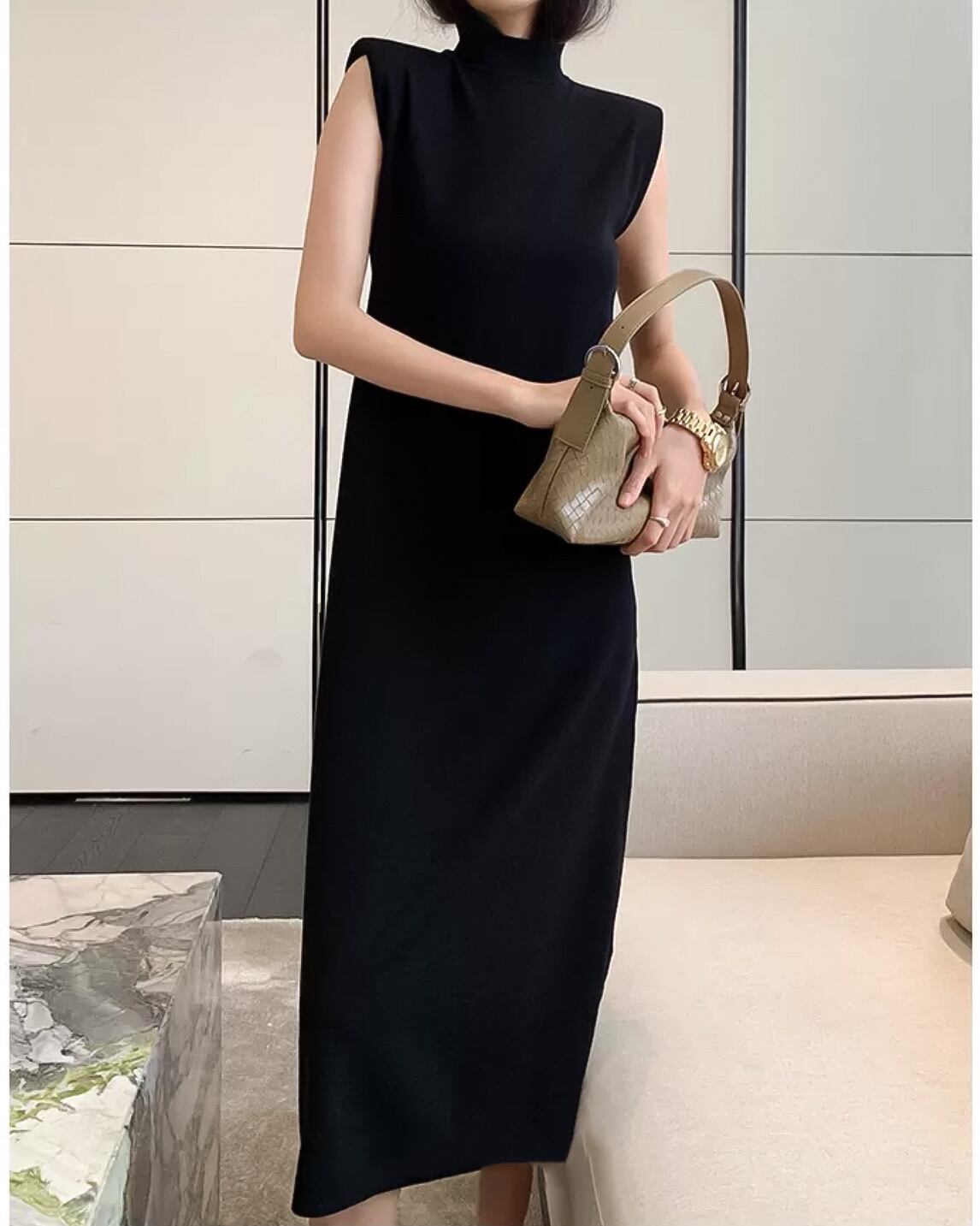 ノースリーブパッドショルダーワンピースドレス