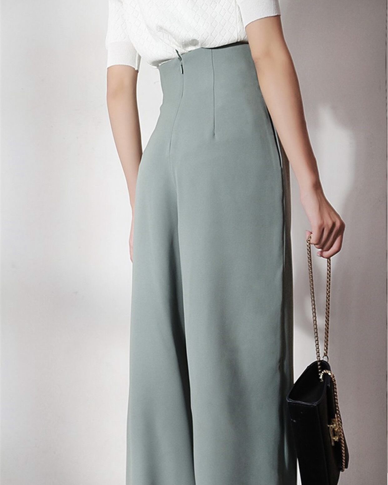 ハイウエストドレープストレートデザインパンツ