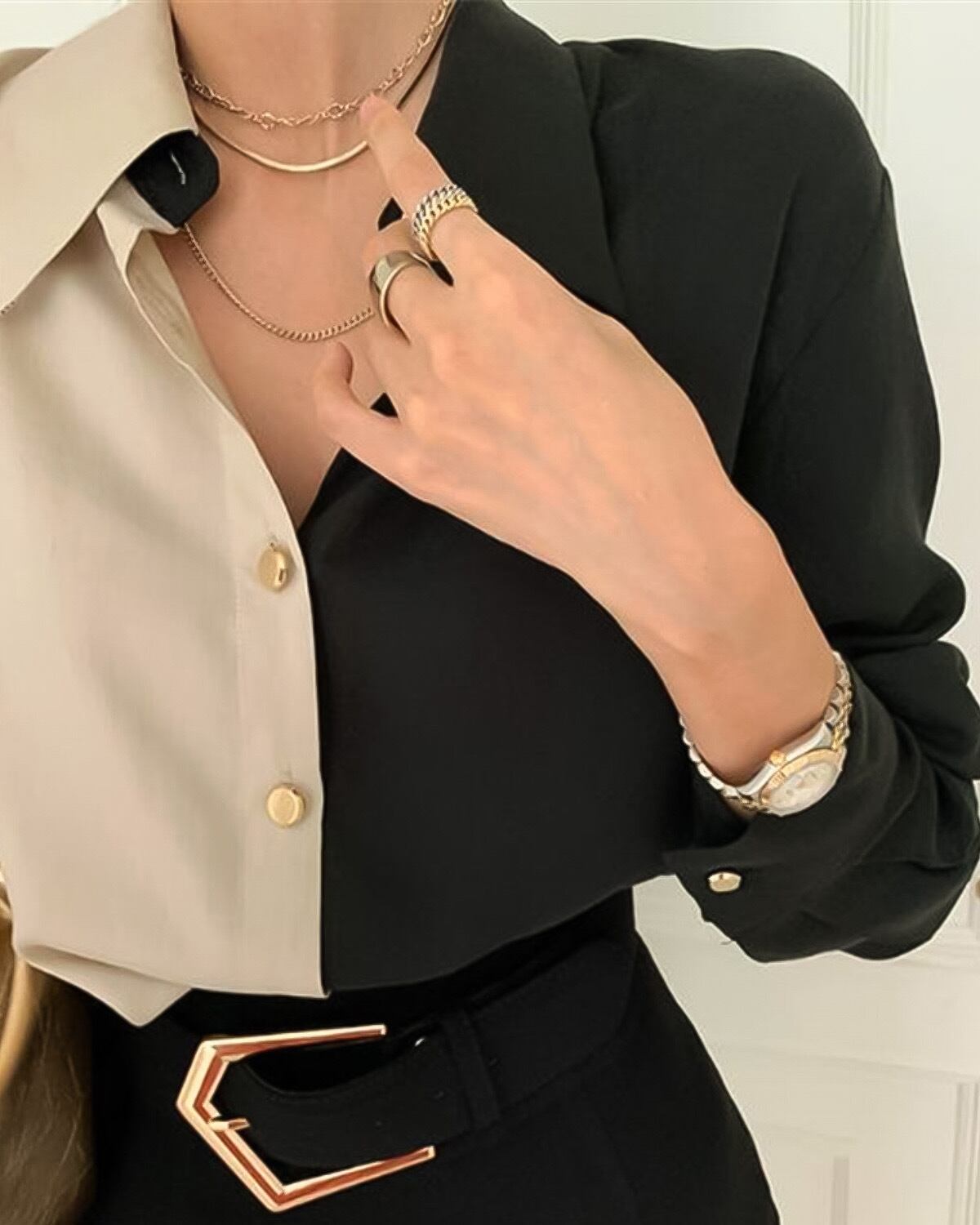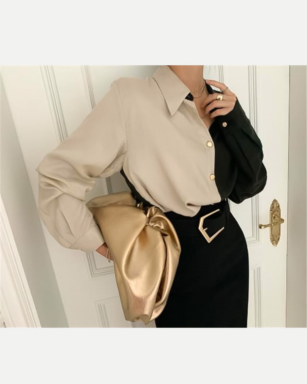 バイカラーシャツブラウス