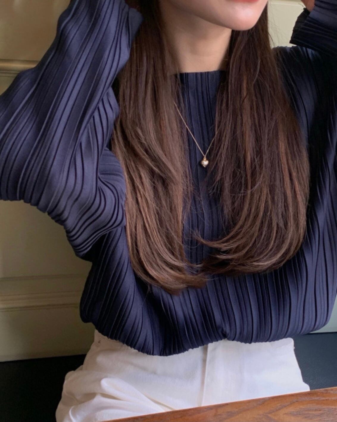 プリーツシャツブラウス