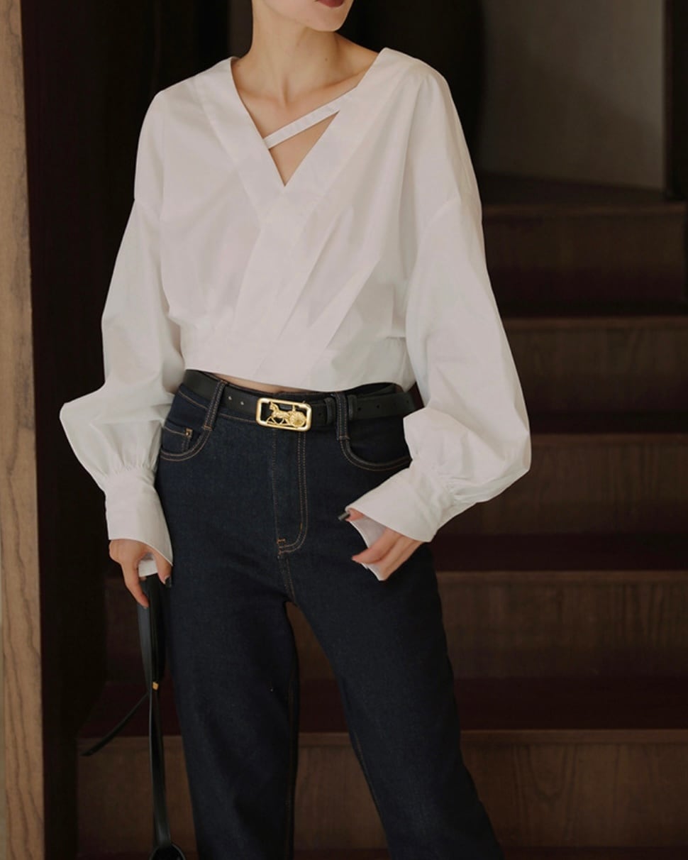 袖にボリュームを持たせたスモックタイプのバルーンスリーブブラウスです。シンプルなボトムスに合わせるだけでサマになる、着回し力の高いアイテムです。