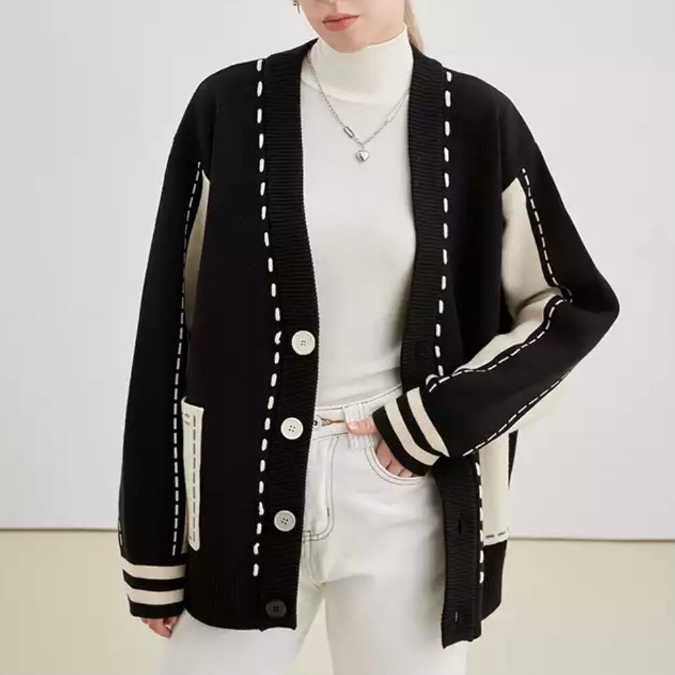 ルーズフィットスティッチニットカーディガン