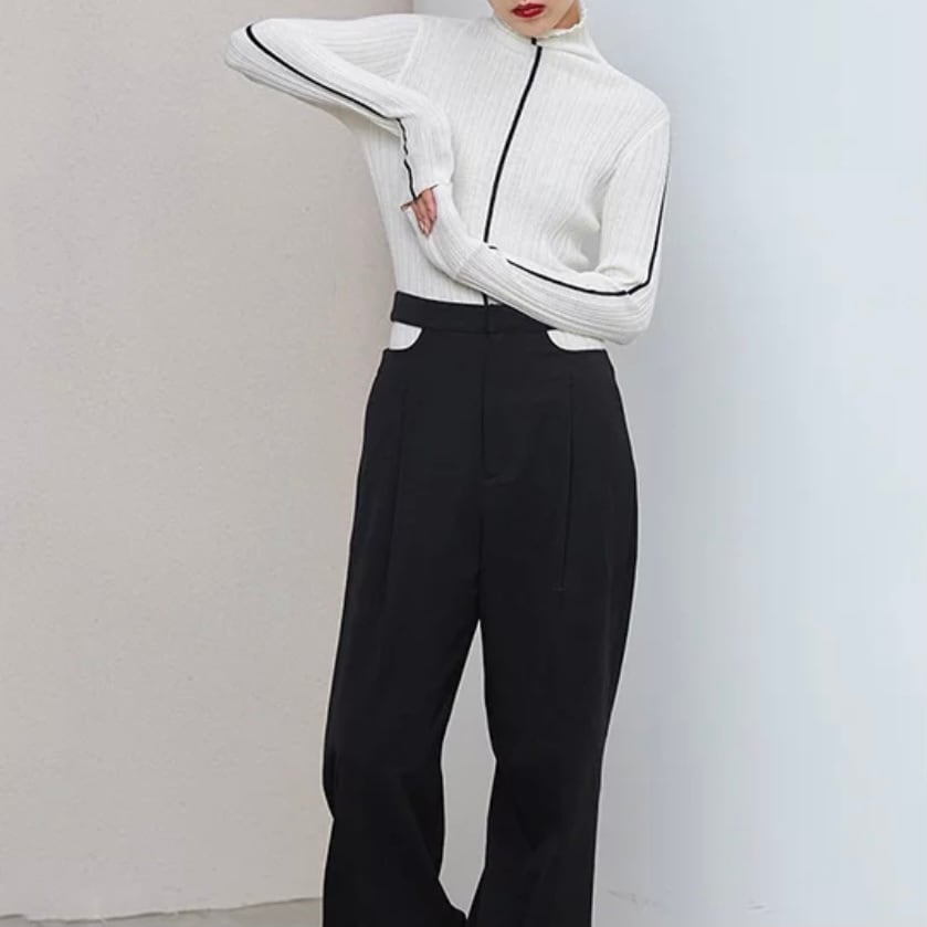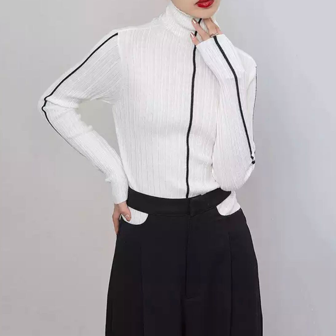 ラインハイネックトップス