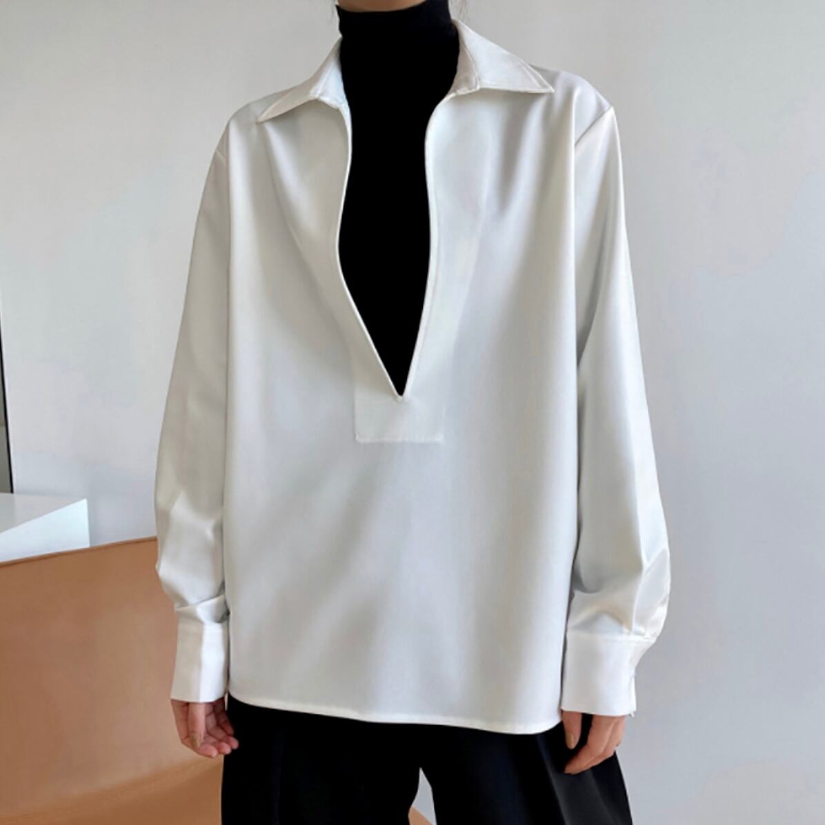 Vネックシャツブラウス