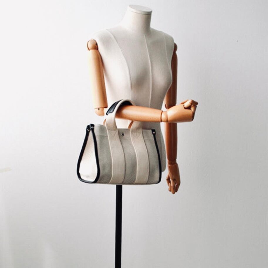 ショルダー付き、2way使用のコントラストハンドルショルダートート。