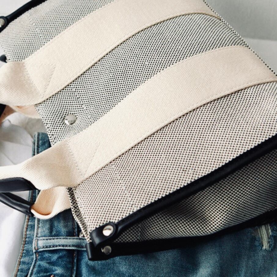 手持ちでも肩掛けでも使えて、シンプルなデザインは
