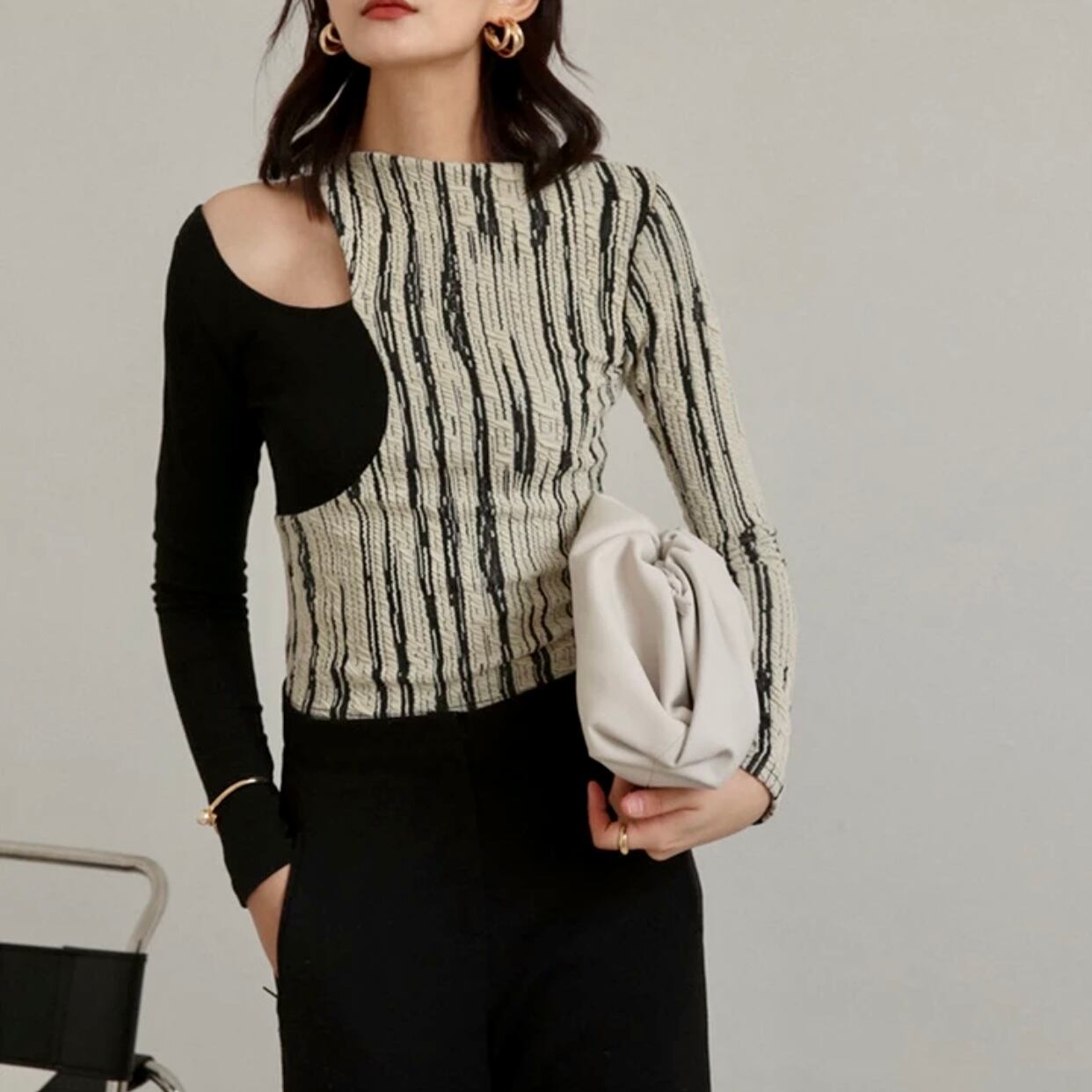 アシンメトリーオフショルダーデザイントップス