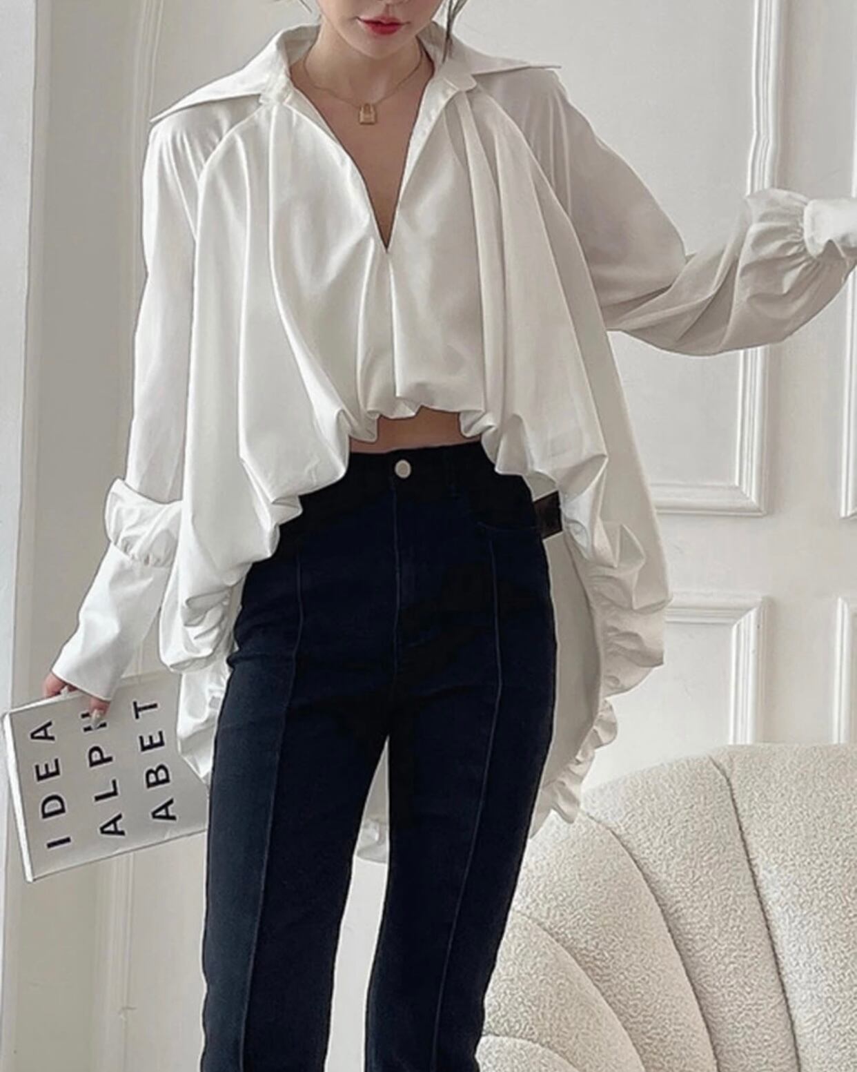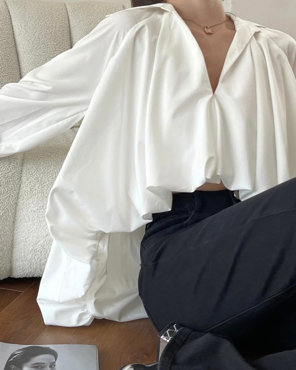 ガジュマルVネックシャツブラウス