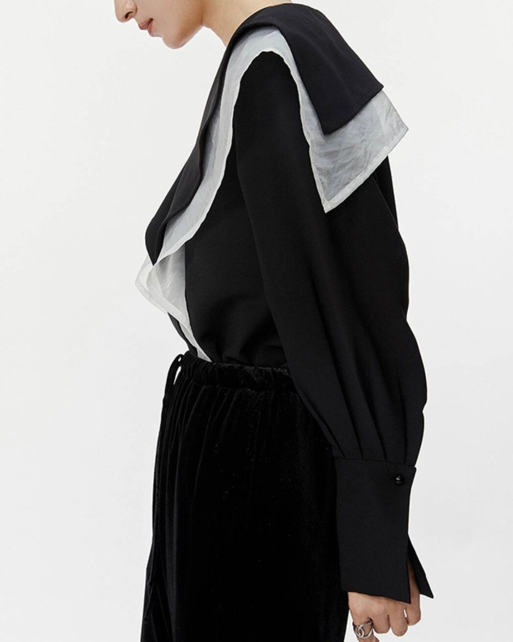 セーラー襟が特徴的な1枚は、レトロなデザインが魅力。さらに、程よい透け感がある薄手の素材で肌触りも抜群です。