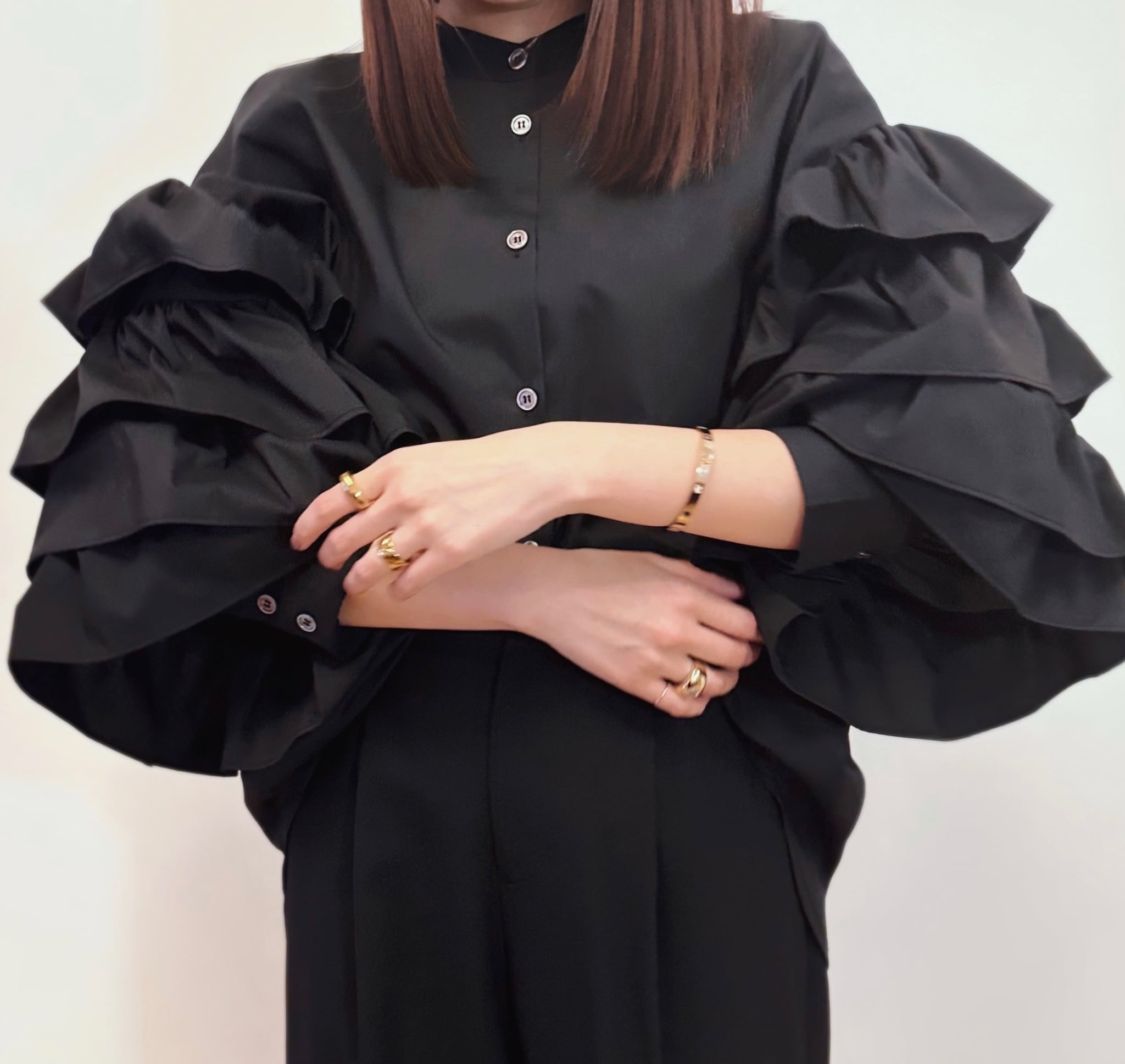 国内で生産されたこちらのブラウスは、しっかりとした縫製で品質も抜群。フリル袖が揺れるたびに、女性らしい魅力を引き立ててくれること間違いなしの1着です。