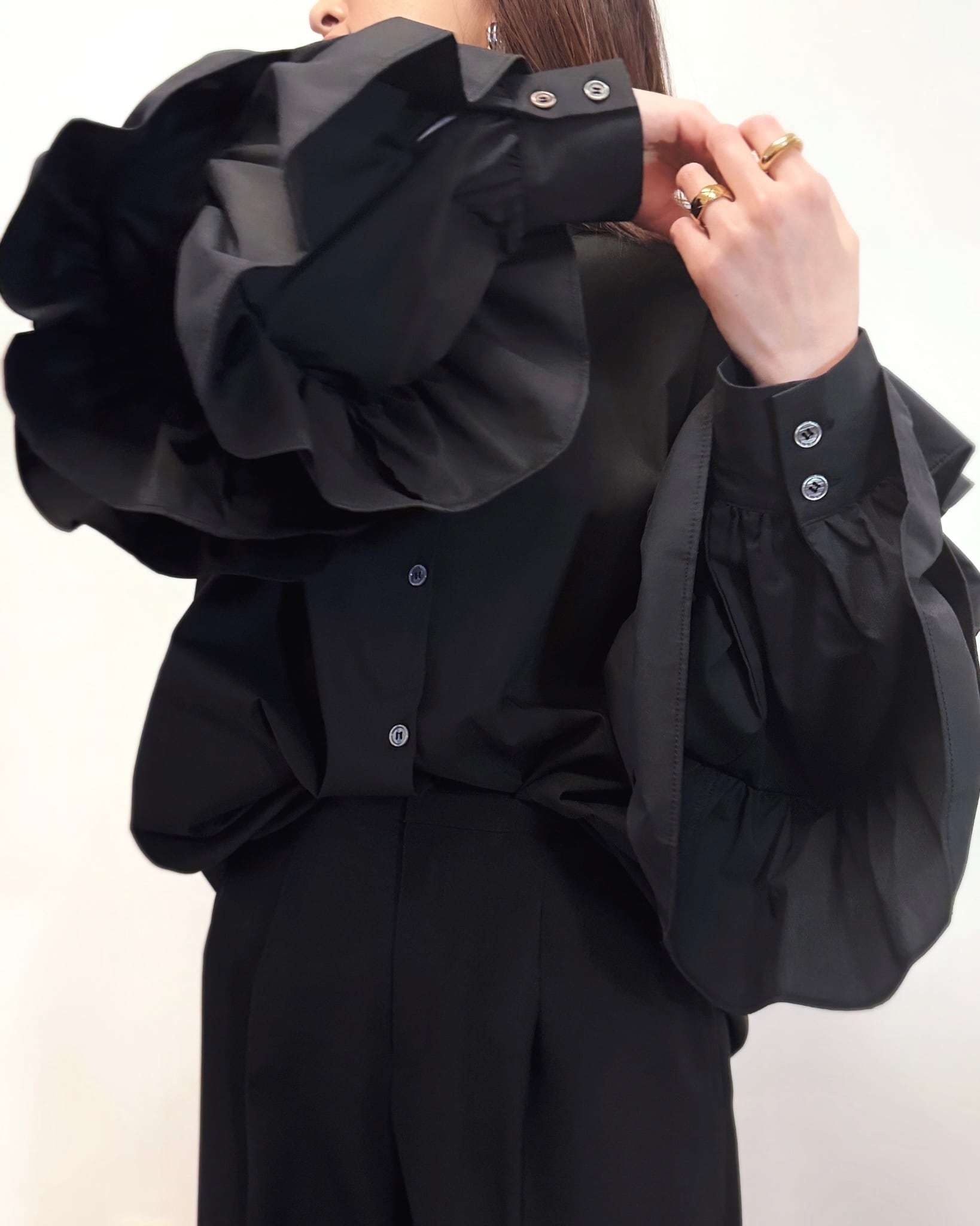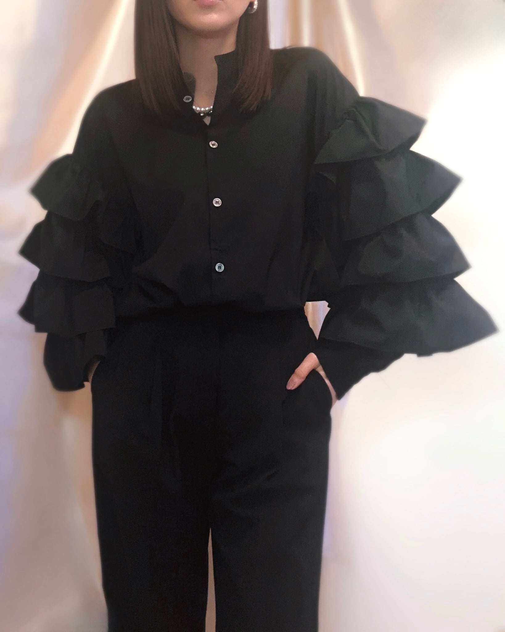 【国内発送】2color/スリーブフリルブラウス