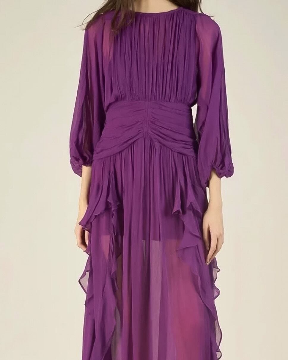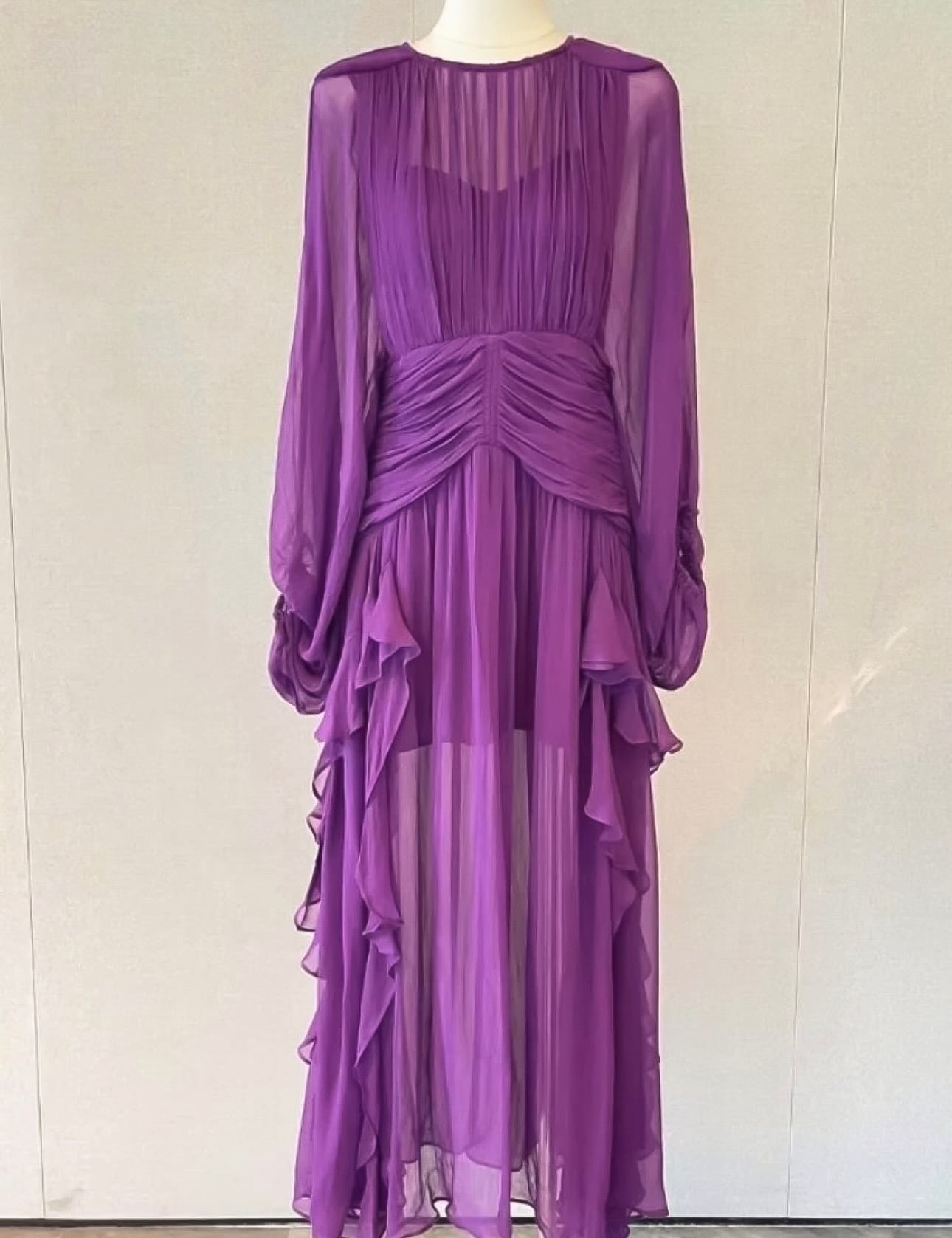 このシフォンフリルワンピースは、3つのカラーから選べるエレガントなロングワンピースです。シフォン素材のボディにたっぷりのフリルが施され、女性らしさを引き立てます。透け感があり、軽やかな着心地でどんなシーンにもぴったり。可愛らしさと上品さを両立させたデザイン。