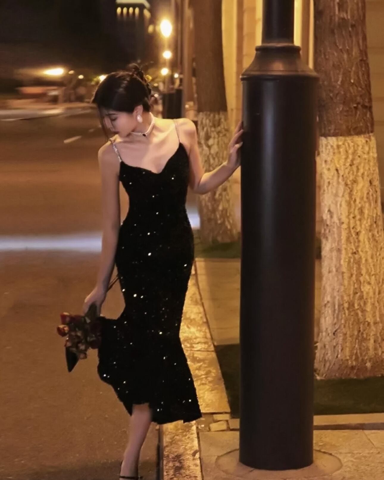 このワンピースは、まるで星空を身にまとっているかのような輝きを放ち、周囲の視線を一気に惹きつけること間違いなし。