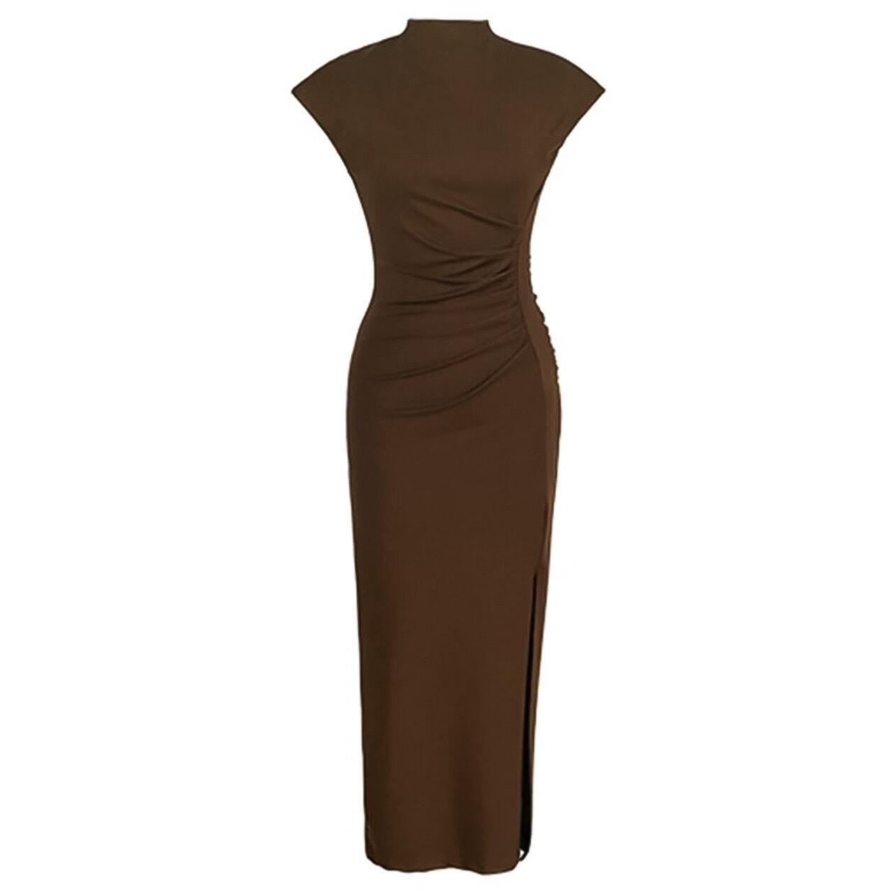 シンプルでモードなデザインが魅力のハイネックタイトワンピースが登場しました。体のラインにフィットするタイトシルエットで、女性らしさを引き立てつつ、カジュアルな雰囲気も演出します。4つのカラーバリエーションからお選びいただけるので、お好みやシーンに合わせてコーディネートが楽しめます。