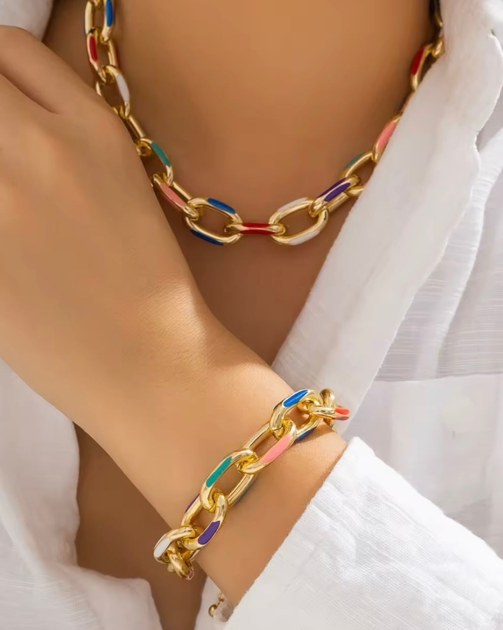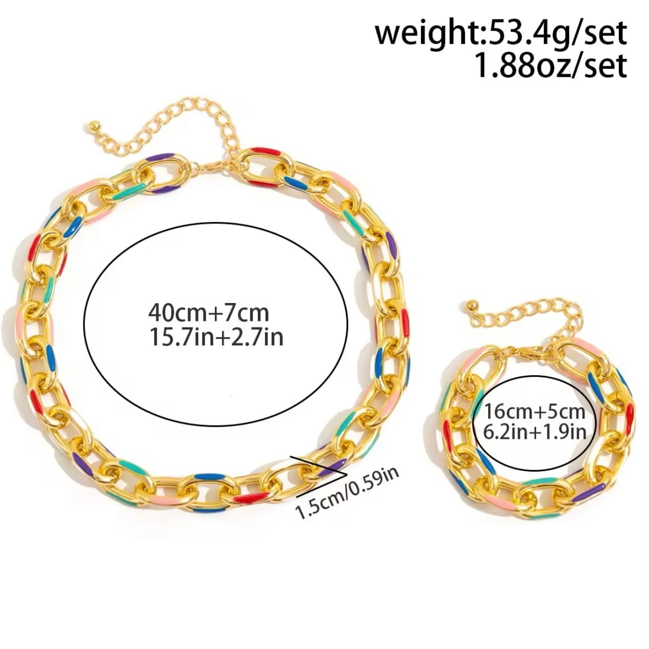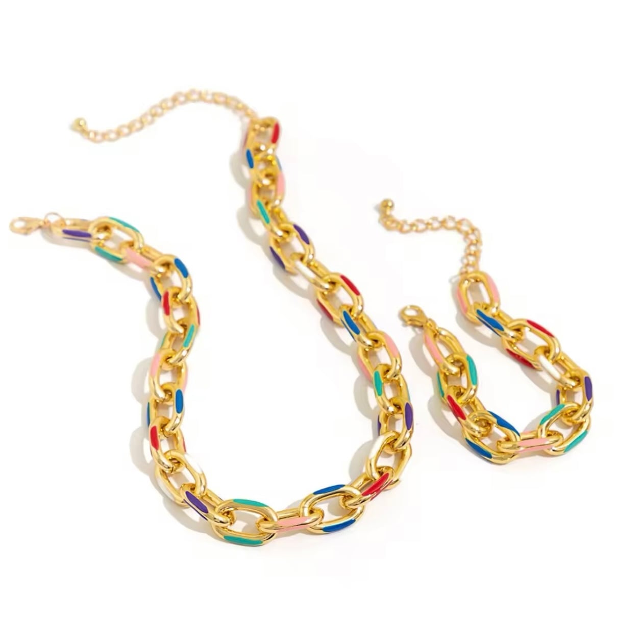 カラフルチェーンネックレスブレスレットセット